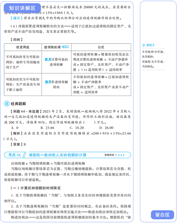 采用这种方式时要注意,记笔记虽然能一举两得,但前提是进行“思考式”记录法,而不是“抄书式”记录法。在记录的过程中,你要记录有疑问的地方,要用自己的话概括课程内容。同时,还要确认笔记的正确性,避免因为记录错误而误导随后的复习。想要“既要又要还要”,一般的白纸笔记本自然无法方便、快捷地满足需求。最好的选择,就是打开注会《轻一》,将自己的理解和备注记录其上。