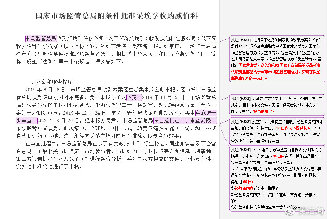 注册会计师考试比较爱结合实时热点出题,所以考生们在平时要有善于发现的眼睛,练习结合考点去分析新闻热点事件。针对近期的国家市场监管总局附条件批准采埃孚收购威伯科事件,黄洁洵老师从CPA经济法的角度进行了分析,小编已将相关内容整理到了下方,感兴趣的小伙伴快来看一看吧!