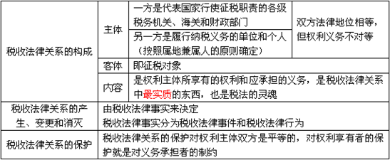 税收法律关系包括三方面内容:税收法律关系的构成;税收法律关系的产生、变更与消灭;税收法律关系的保护。