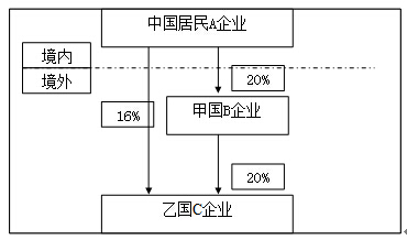 中国居民A企业直接持有甲国B企业20%股份,直接持有乙国C企业16%股份,并且B企业直接持有C企业20%股份,如下图所示: