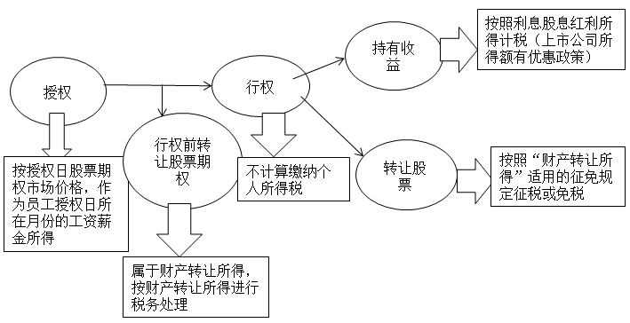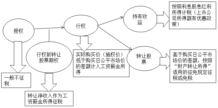 为了方便理解,对于股票期权的涉税情况图示如下: