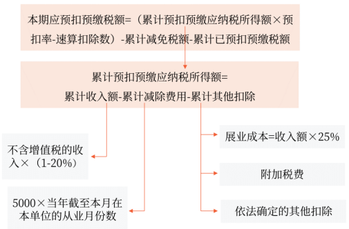 本期应预扣预缴税额=(累计预扣预缴应纳税所得额×预扣率-速算扣除数)-累计减免税额-累计已预扣预缴税额