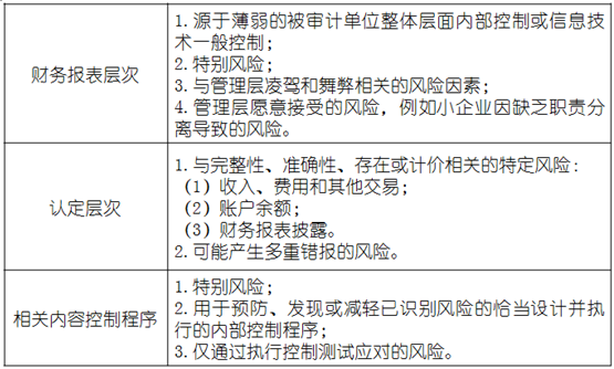 2.结合对拟测试的相关控制的考虑,将识别出的风险与认定层次可能发生错报的领域相联系;