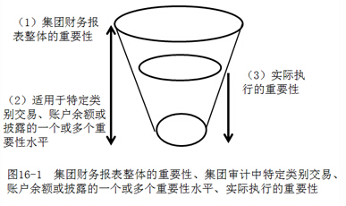 同时,注册会计师基于集团财务报表的审计,如果适用,应当确定“特定类别交易、账户余额或披露的一个或多个重要性水平”,如图16-1“杯子”的左侧(2)所示。