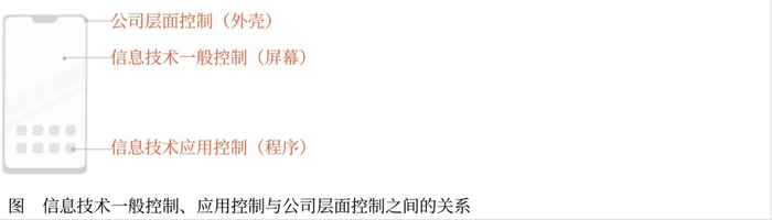 信息技术一般控制、应用控制与公司层面控制之间的关系,如下图所示。