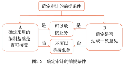 判断审计的前提条件(包含两个必不可少的方面)是否同时满足,如图2-2中的条件A和条件B。