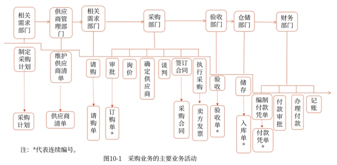 本章以一般制造业企业为例,说明采购业务的主要业务活动,如图10-1所示。