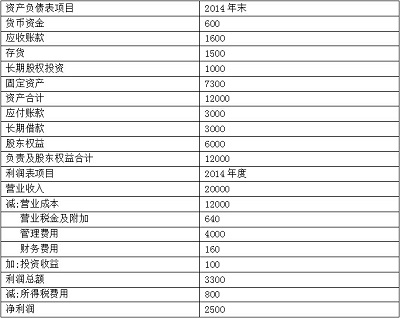 (1)甲公司2014年的重要财务报表数据(单位万元)
