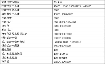 (1)编制甲公司2014年的管理用财务报表(提示:按照各种损益的适用税率计算应分担的所得税,结果填入下方表格中,不用列出计算过程)