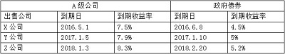 2012年1月1日,公司收集了当时上市交易的3种A级公司债券及与这些上市债券到期日接近的政府债券的相关信息。