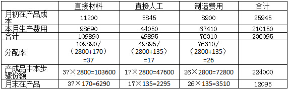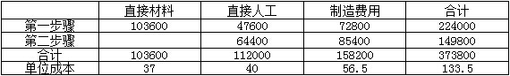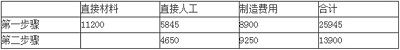 要求:(1)编制第一、二步骤成本计算单(结果值入下列表格)