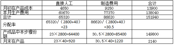 第二步骤制造费用月末在产品约当产量=100×40%=40(件)