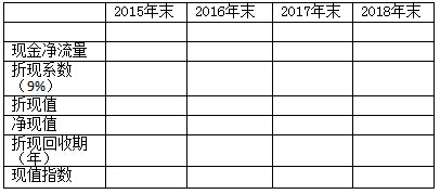 (1)计算项目的初始现金流量(2015年末增量现金净流量)、2016—2018年的增量现金净流量及项目净现值、折现回收期和现值指数,并判断项目可行。