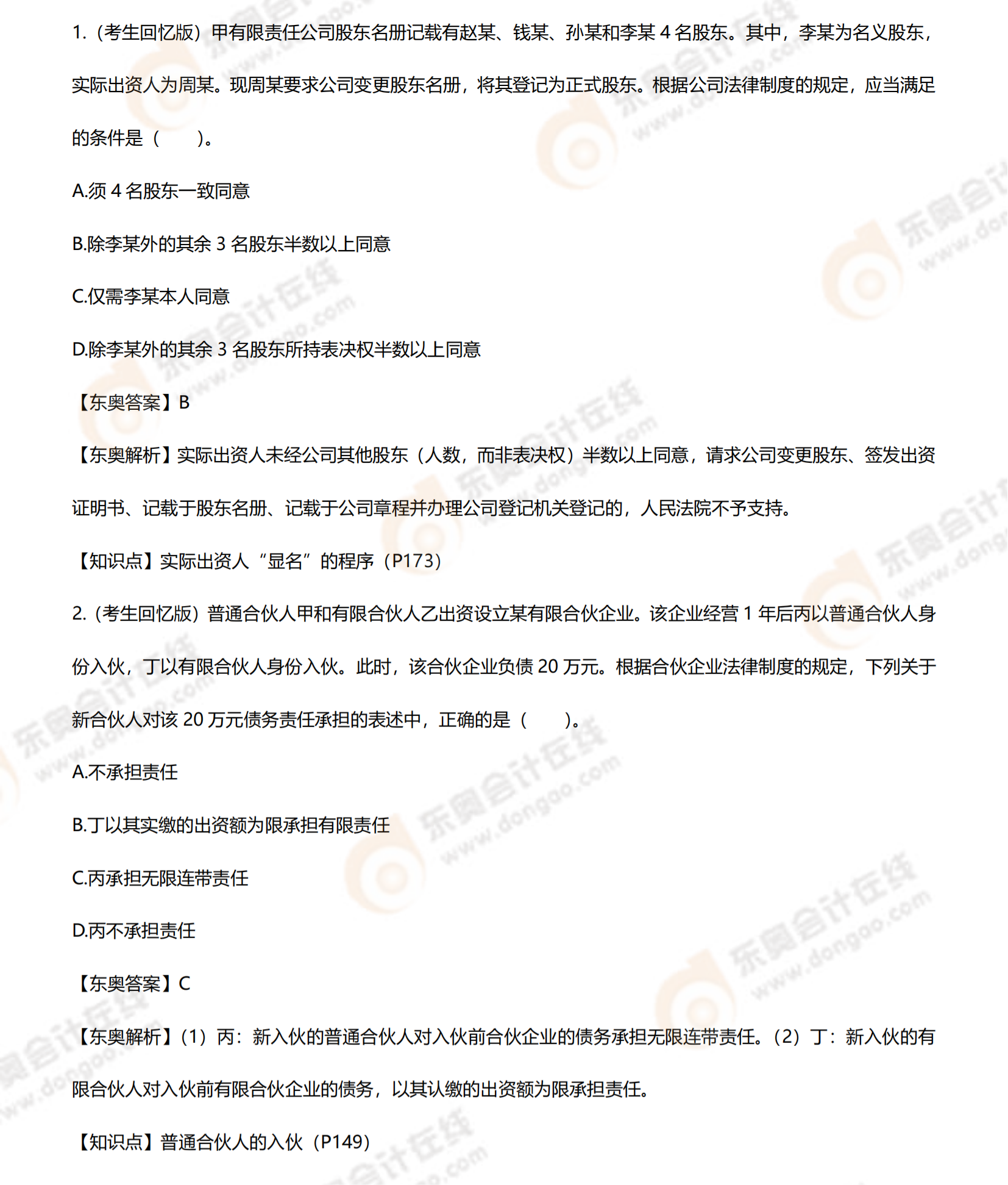 注:以上注册会计师考试试题内容由考生回忆反馈,东奥教研团队统计,东奥会计在线整理发布