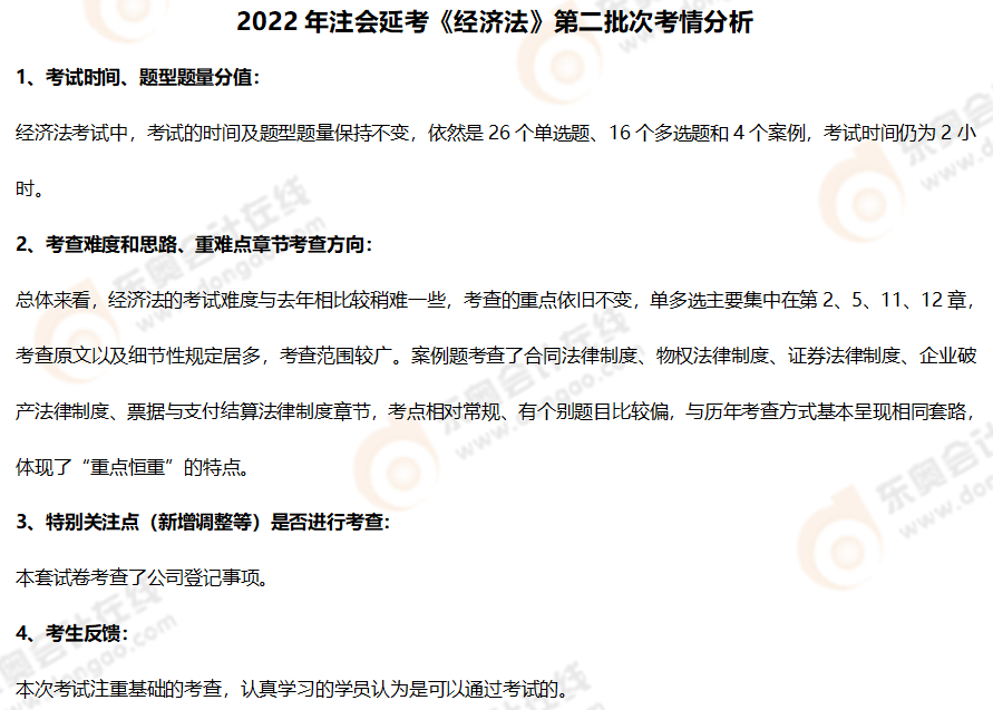 2022年注会延考《经济法》第二批次考点总结及考情分析