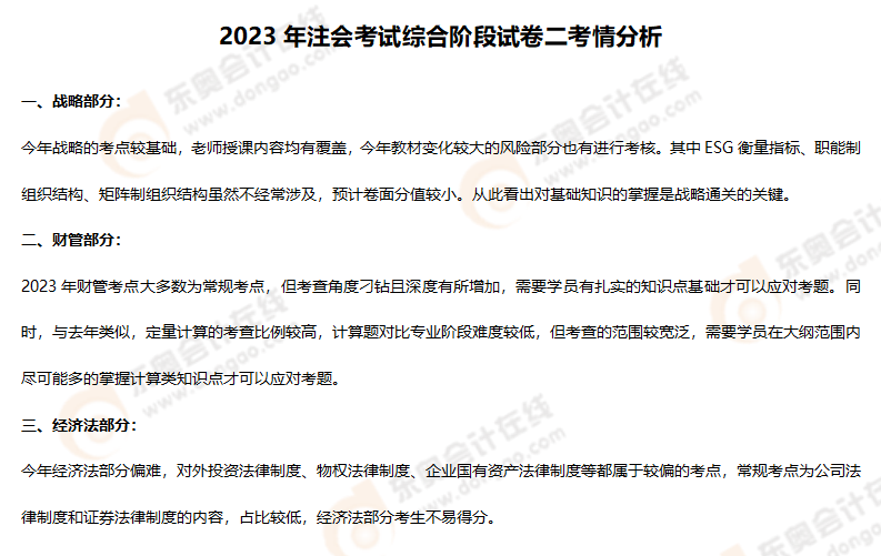 以上就是东奥会计在线为大家整理的2023年注会考试综合阶段考情分析及考点总结,预祝各位考生能够在考场上乘风破浪,为自己博得更好的未来!