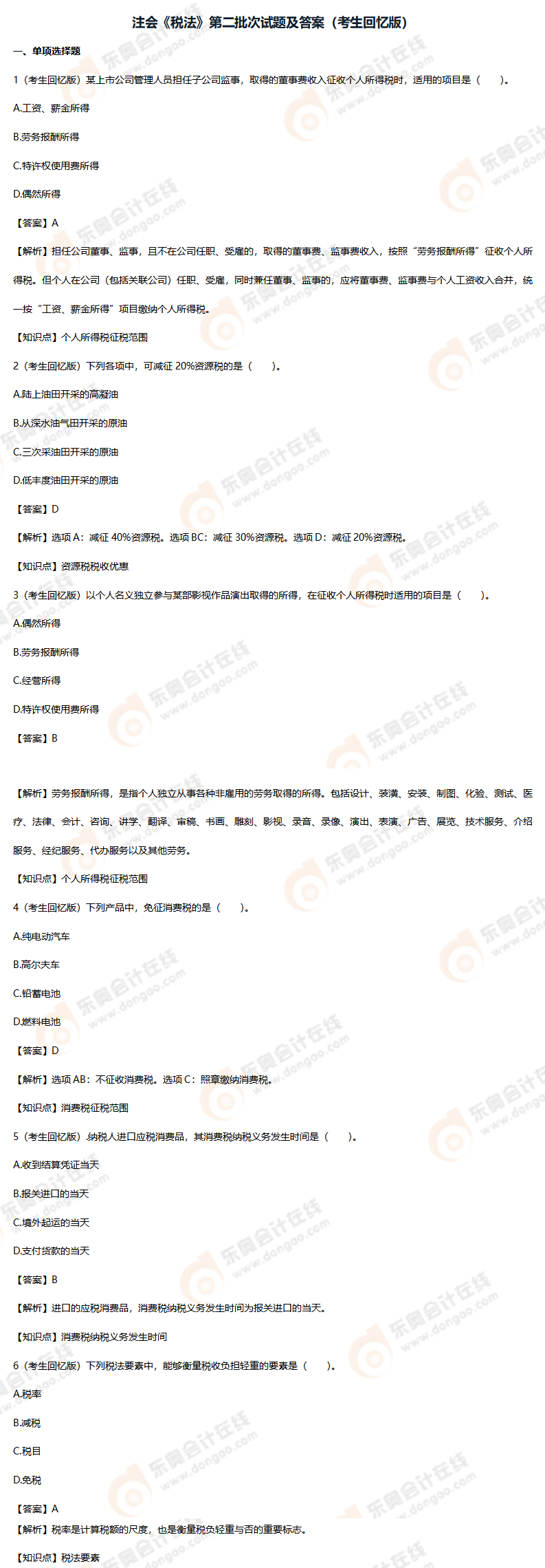 注:以上注会考试试题内容由考生回忆反馈,东奥教研团队统计,东奥会计在线整理发布