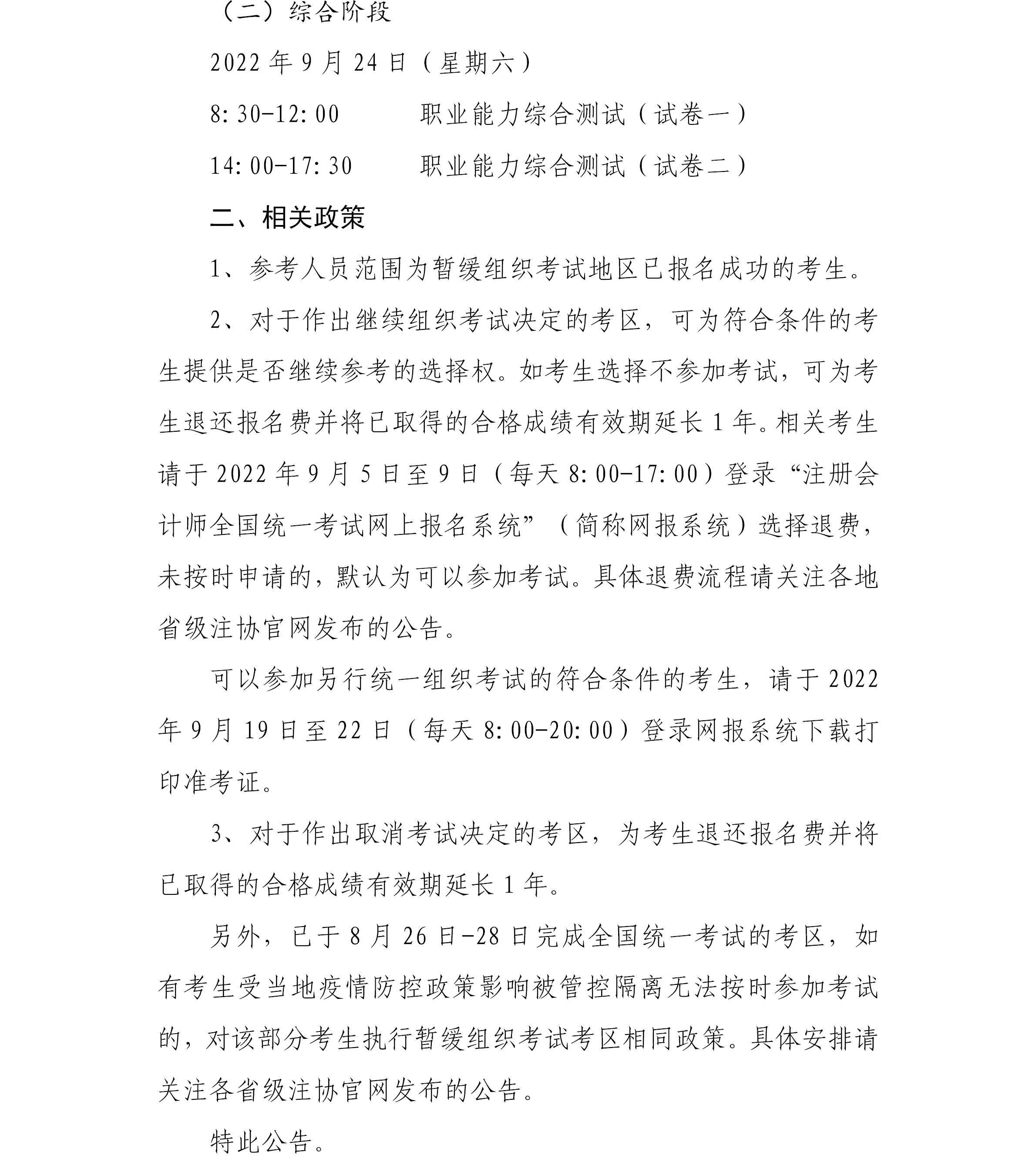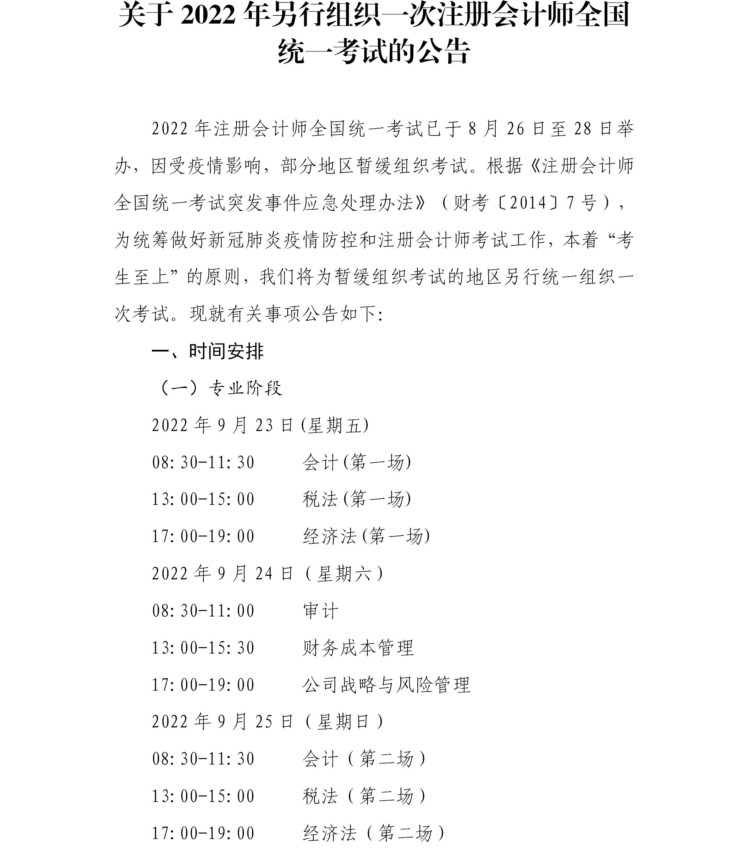 云南注协:关于2022年另行组织一次注册会计师全国统一考试的公告