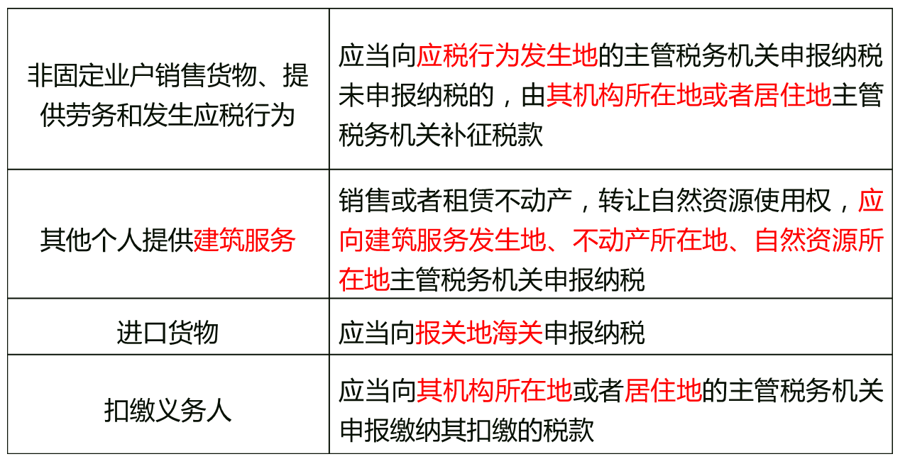 【知识点】:增值税纳税地点