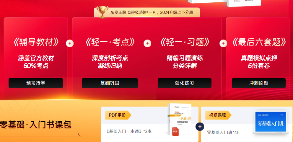 2024年中级经济师全新考季正式开始,无论同学们是“中级经济师”的新考生或老同学,备考没有“短途”可走,找到适合自己的复习资料直观重要,尤其是在中级经济师官方教材发布之前,不知道从哪里开始学,学什么的同学,2024年中级经济师《轻一》图书组合全新升级,八本书覆盖备考的全阶段,价格仅需两位数!在品质和价格之间无需做选择,我们都要!
