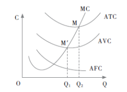 平均可变成本曲线 | (1)与边际成本曲线交于平均可变成本曲线的最低点M′,此时边际成本=平均可变成本 (2)在M′点前,平均可变成本下降,边际成本<平均可变成本 (3)在M′点后,平均可变成本上升,边际成本>平均可变成本 |