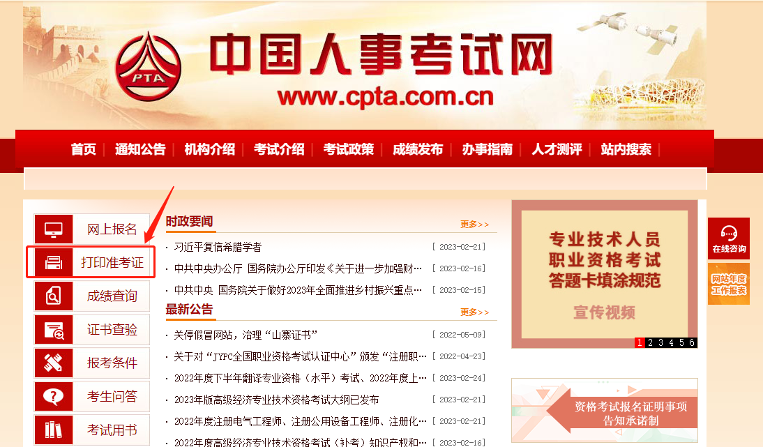 2022年中级经济师考试补考准考证打印与正式考试的准考证打印入口相同,均为中国人事考试网,考生进入中国人事考试网后,左侧栏目中就会看到“打印准考证”字样,进入此栏目后选择考试名称打印即可,值得注意的是,2022年中级经济师补考因无需重新报名,所以准考证上的考试科目为22年度报考的科目,请大家仔细核对个人信息及考试信息,并按照准考证上的时间参加考试。2022年中级经济师补考准考证打印入口: