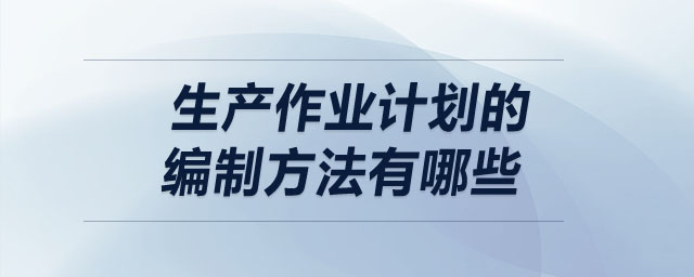 (一)在制品定额法:在制品定额法也叫连锁计算法,适用于大批大量生产类型企业的生产作业计划编制。(二)提前期法:提前期法又称累计编号法,适用于成批生产类型企业的生产作业计划编制,是成批生产作业计划重要的期量标准之一。(三)生产周期法:生产周期法适用于单件小批生产类型企业的生产作业计划编制。