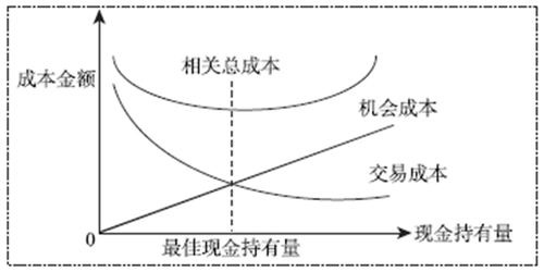 交易成本与机会成本相等,相关总成本最低,那么此时的现金持有量也就是最佳现金持有量